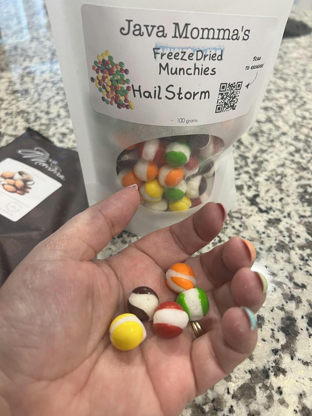 A: Humidity is the enemy of the crunch! Keep your Munchies tightly sealed in their pouch and store them at room temperature. If you leave the bag open, the candy will pull moisture out of the air and get chewy again. (But honestly, they are so good, they probably won't last long enough for that to happen).